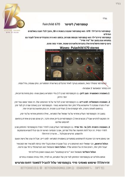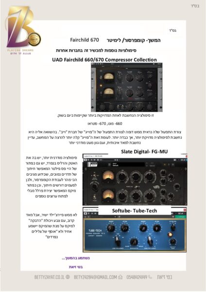 אולפן מקצועי וביתי, ציוד הקלטה, תוכנה ופלאגינים, פלייבקים, הפקות אלקטרוניות, עיצוב פסקול, מיקס... פירוט נוסף