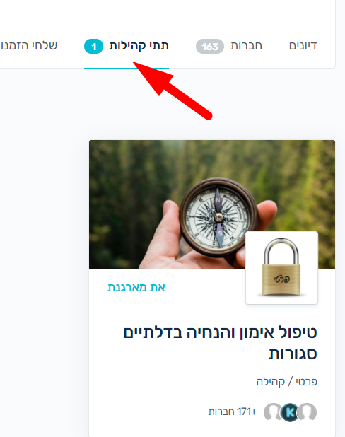 מצורף צילום מסך של הקהילה הסגורה