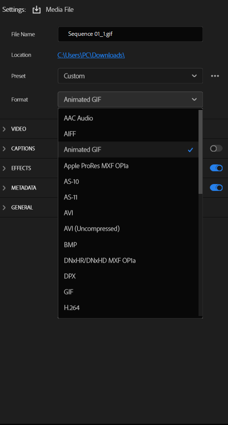 ובפורמט את בוחרת את האפשרות של Animated GIF (ולא GIF לבד)