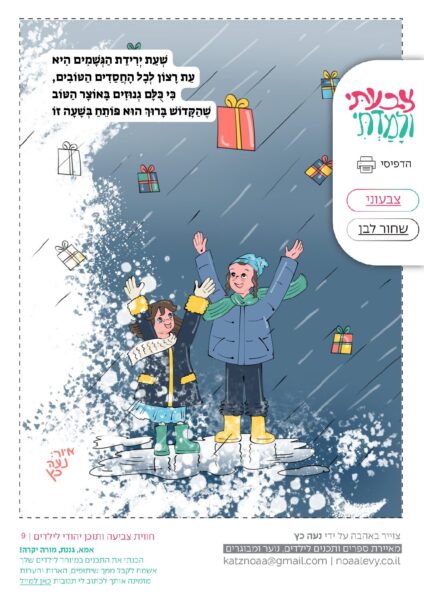 צָבַעְתִּי וְלָמַדְתִּי – מוזמנת בחום להדפיס לילדים ולהנות // גשמים שפע לעולם